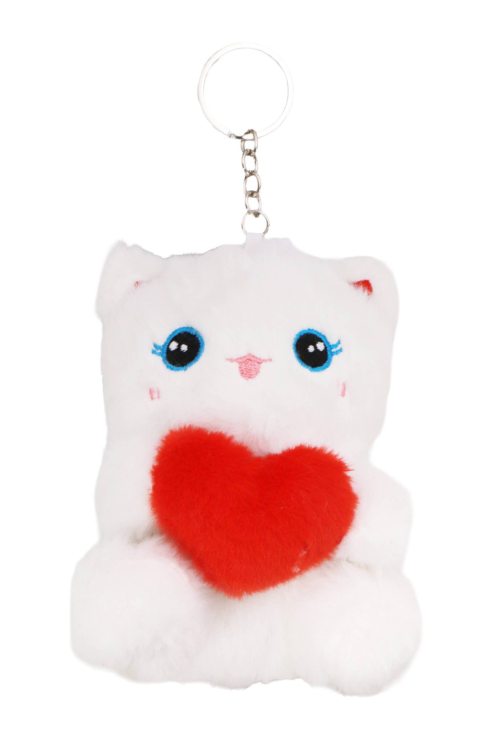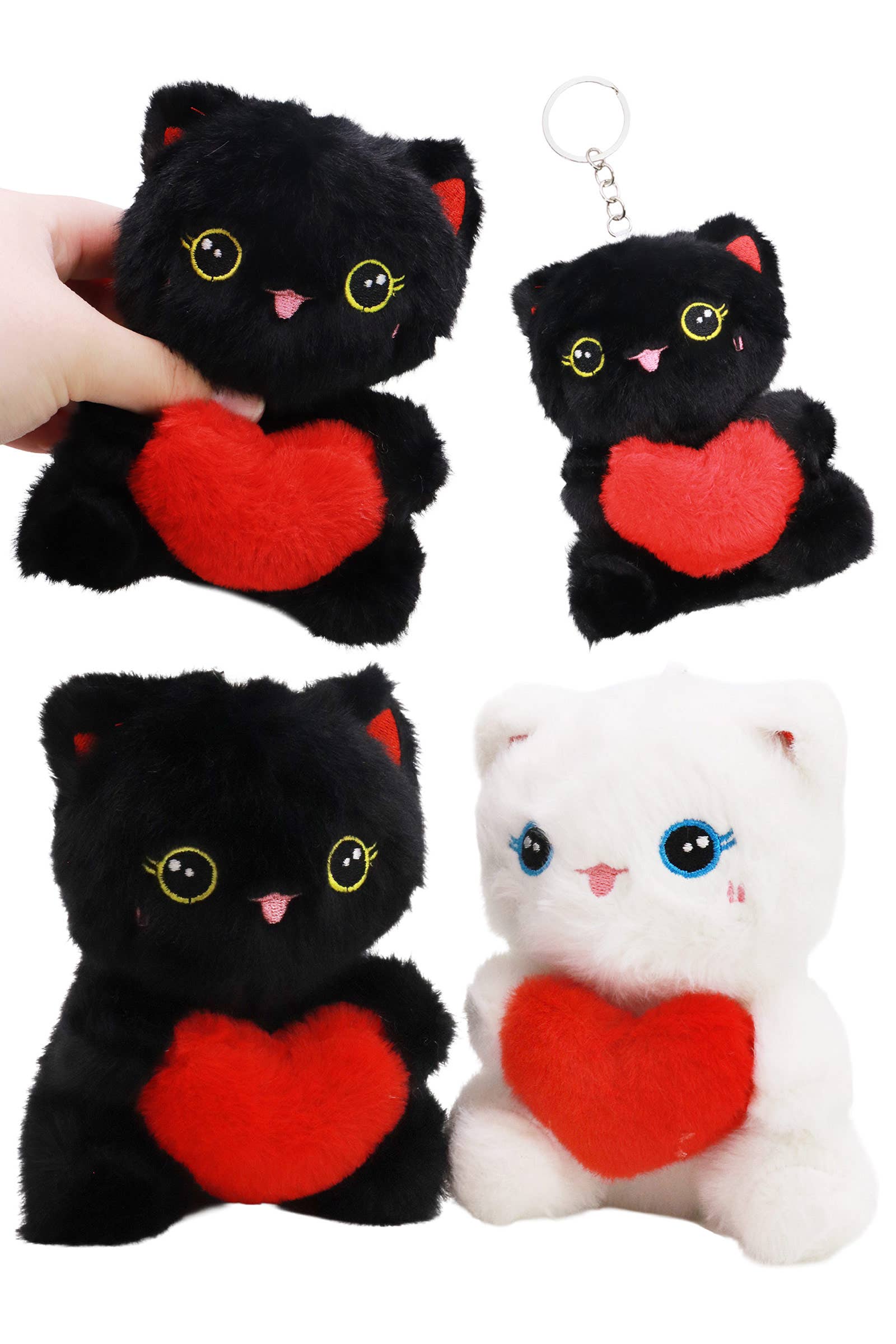 Cute Kitty Cat Hugging Heart Fuzzy Stuffed plush-Perfect for Valentine's Day, each adorable plush cat is hugging a vibrant red heart, making it the sweetest romantic gesture or a cute accessory for your backpack or keys.