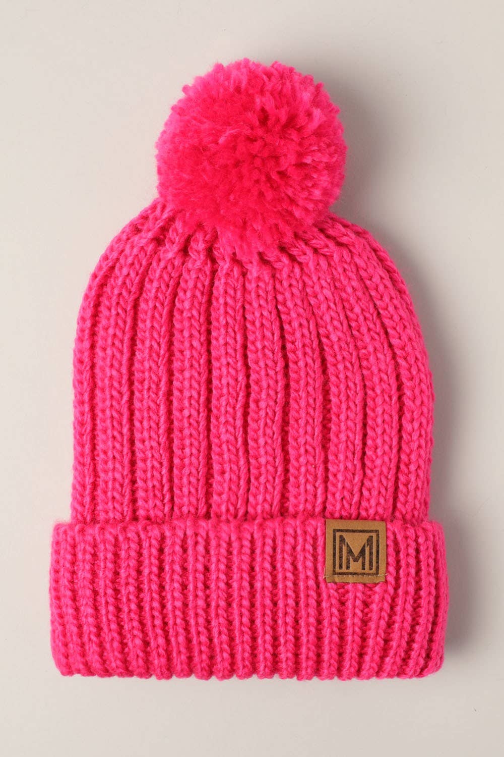 Solid Color Rib Knitted Beanie Hat with Pom Pom, , - Oversized chunky beanie, - Rib knitted beanie with pom pom , - Sherpa lining, , * One size with a good stretch to fit, (8" Width, 11" Height Included 3" pom ),