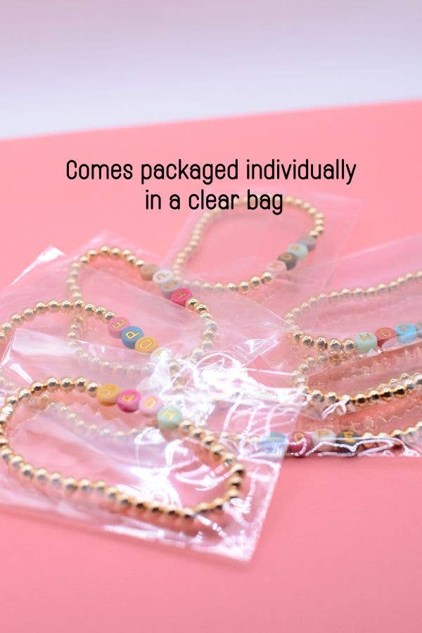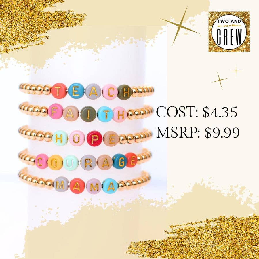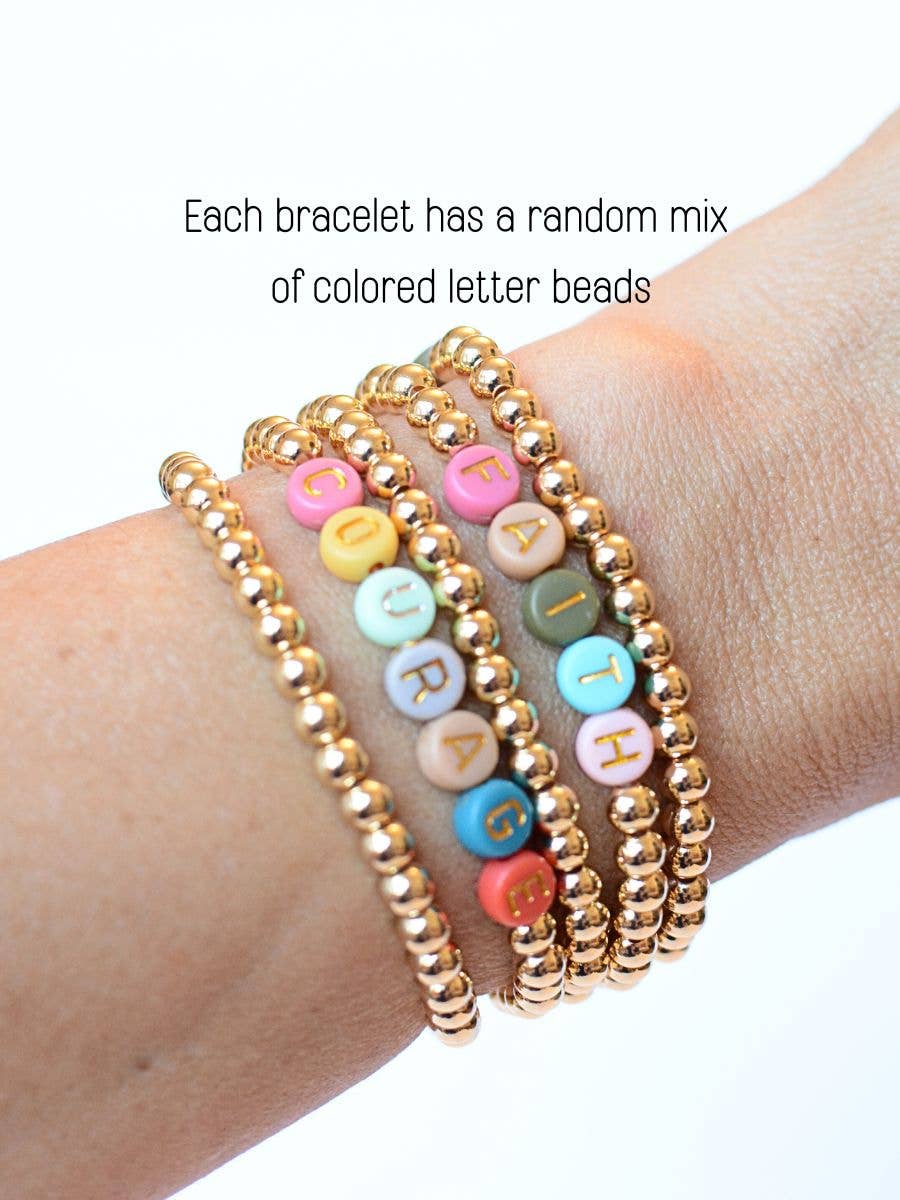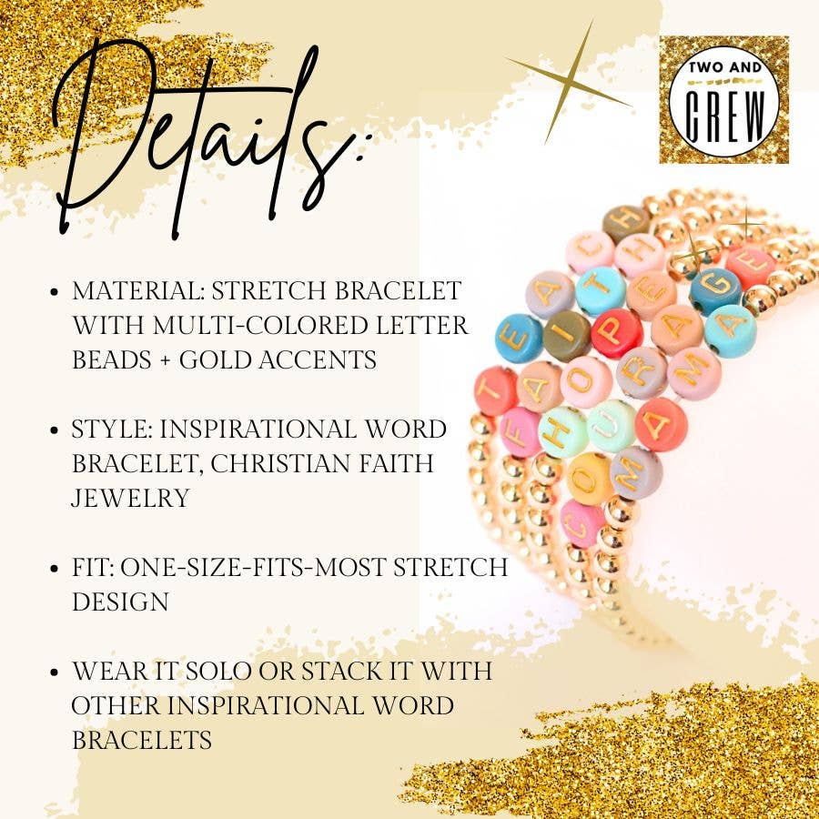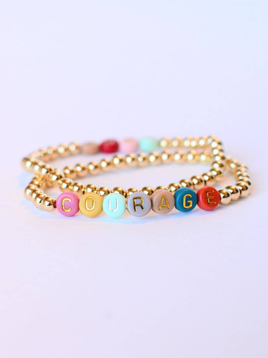 Add a meaningful touch to your everyday style with this COURAGE beaded stretch bracelet. Designed with bright multi-colored letter beads and luxe gold accents, this bracelet makes an uplifting statement while remaining comfortable and easy to wear. Whether you’re gifting it as an inspirational reminder or adding it to your own stack, this piece is perfect for spreading positivity, faith, and encouragement.