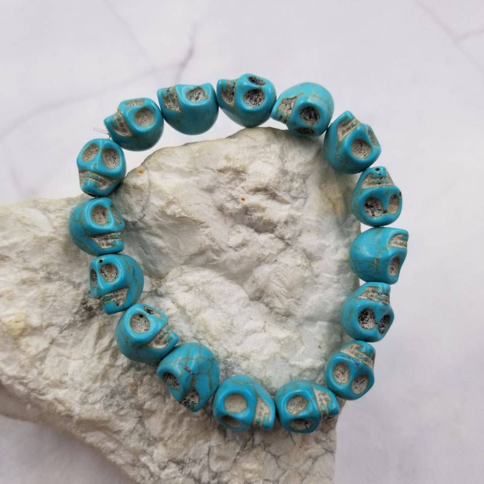 Halloween bracelet Gothic style Skull Design Beaded Stretch Bracelet Stone material Skull size 1CM * 1.2CM